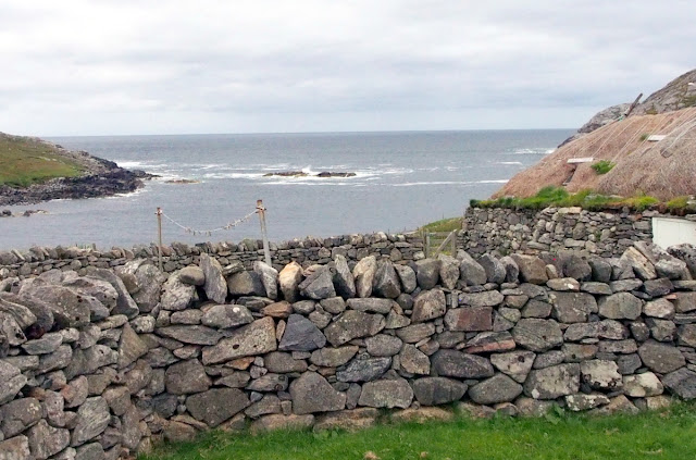 On a rather overcast and chilly morning Mary and I went to the isle Lewis for the day. We went on a combined ferry and coach trip to see some places of historic interest on Lewis. It was blustery and grey as we sailed out of Ullapool across the North Minch. But the weather didn't deter our enjoyment. I've only ever been to Lewis once before and never further than its capital, Stornoway. It was a really interesting and enjoyable day. The best bit was perhaps the visit to the black houses at Gearrannan, facing towards the Atlantic, life here must have been tough - even if the views were good! Harris is noted for its tweed but Lewis also had its share of weaving looms. The one here is a Hattersley loom and the weaver is Roddy who patiently answered our questions and explained how the hands free flying shuttle mechanism worked. As we made our way back to the coach we could smell the smoke from the peat fire. Peat has a wonderful pungent almost sweet smell as it burns.